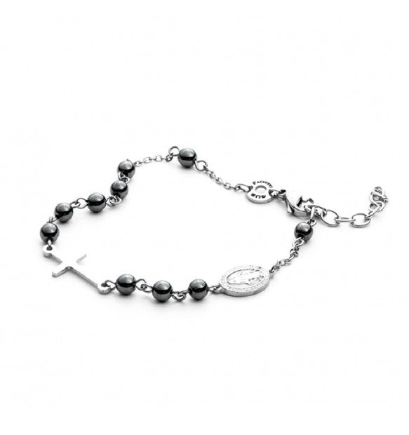 Braccialetto da uomo 4US di Cesare Paciotti realizzato in acciaio modello rosario; elemento centrale a forma di croce. Ha lunghezza totale di 22 cm, chiusura a moschettone.