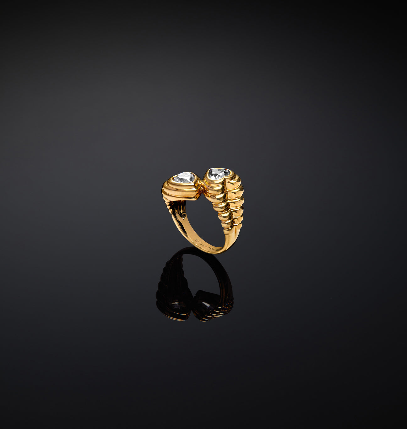 Anello placcato oro 18K con zirconi a forma di cuore.