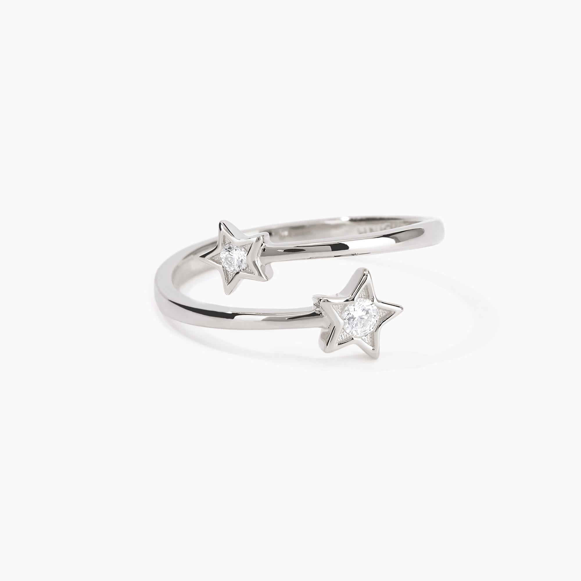 Anello contrarié in argento con stelle in zirconi.