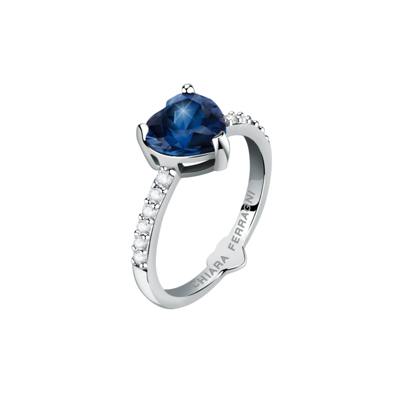 Anello donna chiara ferragni, j19auv34014, collezione diamond heart, in metallo placcato in rodio con zirconi bianchi e blu, misura 14