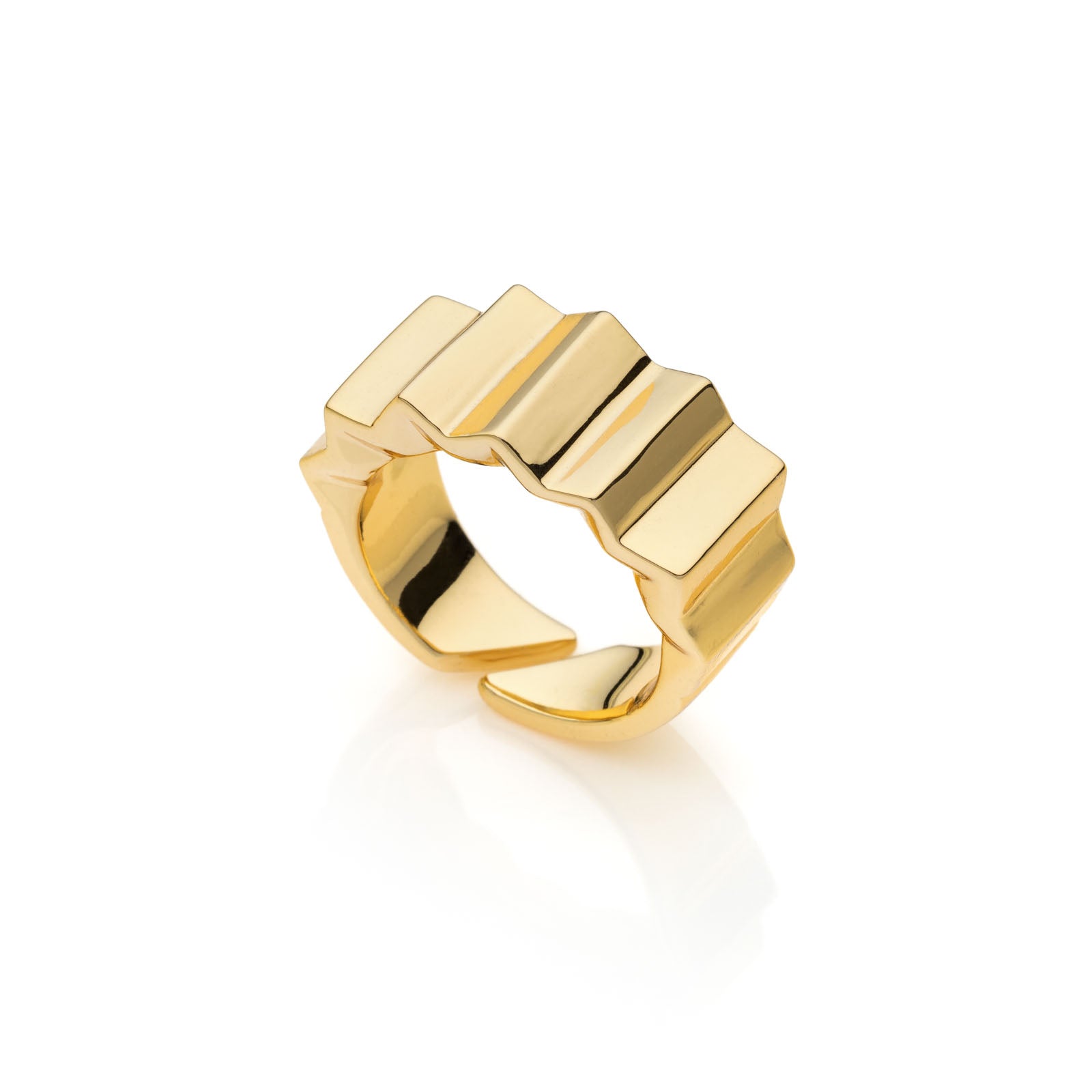 Anello in bronzo lucido con bagno in oro con rilievo a zig zag.