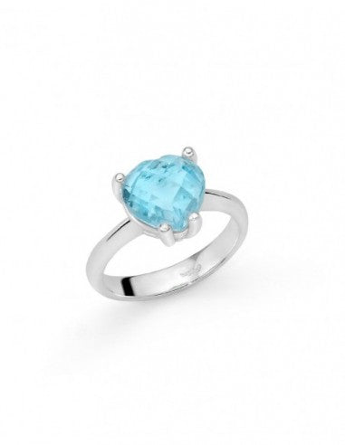 Anello della collezione Miluna Gemma del Cielo da donna. Colore: argento e azzurro. Anello in argento 925‰ caratterizzato da un prezioso Topazio naturale azzurro incastonato in un centrale a cuore taglio Briolette 10 x 10 mm, caratura 4