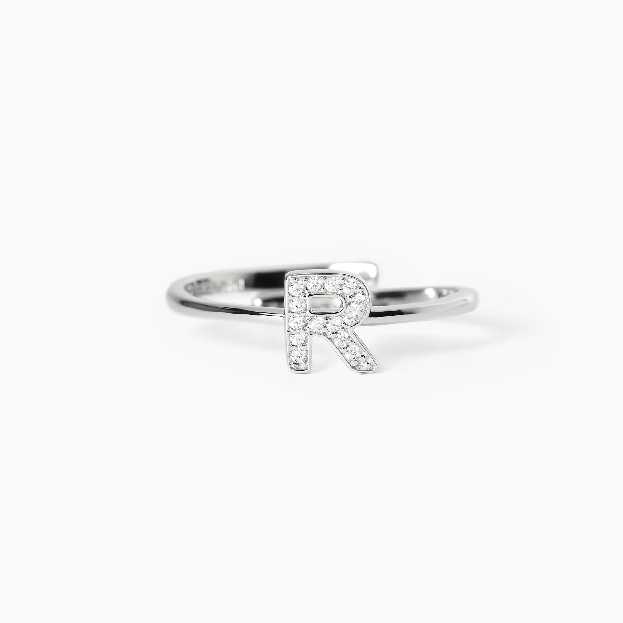 Anello in argento con lettera R in zirconi.