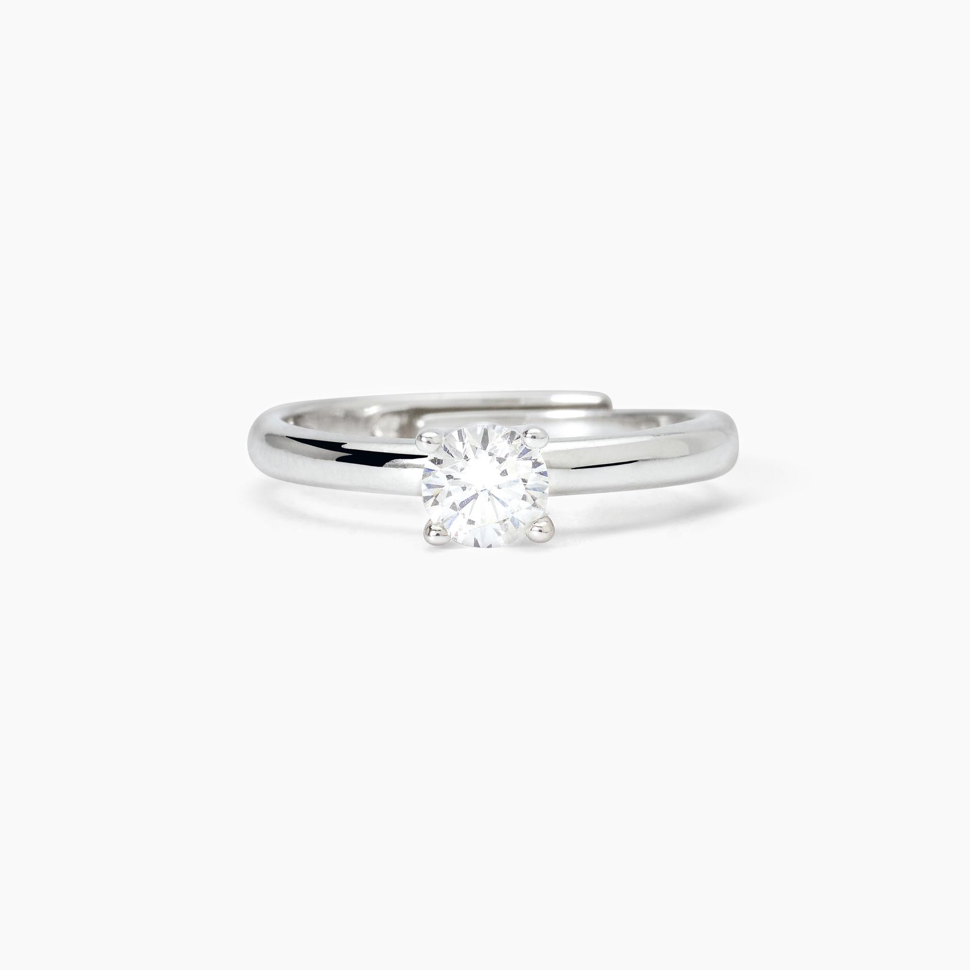 Anello da donna solitario regolabile in argento rodiato con zircone.