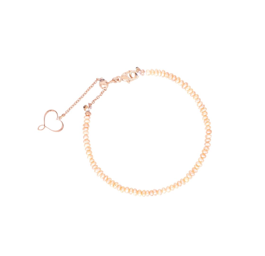 Bracciale catena della collezione Maman et Sophie Pietre da donna. Colore: oro rosa. Il gioiello è in argento 925‰ con galvanica in oro rosa ad alto spessore e resistenza, realizzata con perle di acqua dolce di circa 2,5 mm. Lunghezza regolabile grazie alla piccola sfera scorrevole e la chiusura a moschettone che termina con il cuore Maman.