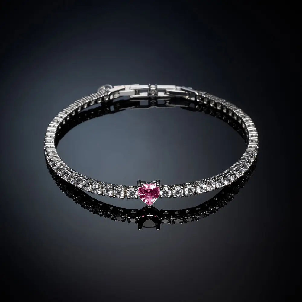 Bracciale Chiara Ferragni Brand First Love - J19AUV13 - Genere: Donna, Misura : 16 cm + 1,5 cm cm, Colore: Silver, Bluespirit experience: Fashion, Materiale: Placcatura rodio, Colore pietra: Rosa, Pietra: Cubic zirconia, Certificato di autenticità: Sì, Confezione: Originale Chiara Ferragni Brand, Simbolo: Cuore, Modello: Tennis
