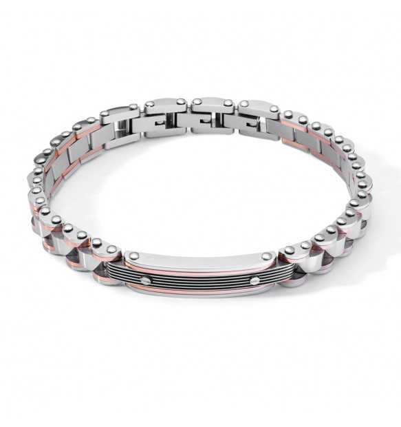 Braccialetto da uomo realizzato in acciaio anallergico con finitura lucida e oro rosa. Centrale con trattamento ip nero.