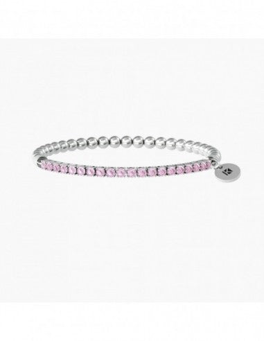 Bracciale elastico in acciaio con sfere lucide e tennis di zironi rosa.