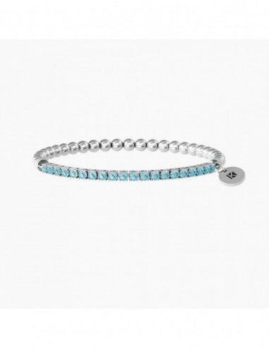 Bracciale elastico in acciaio con sfere lucide e tennis di zironi azzurri.