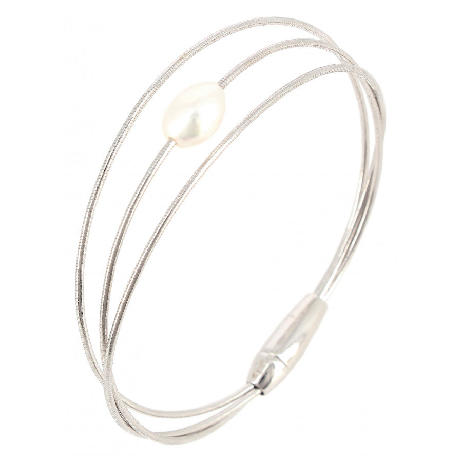 Bracciale Pesavento in Argento rodio Lucido a 3 fili con perla centrale bianca.