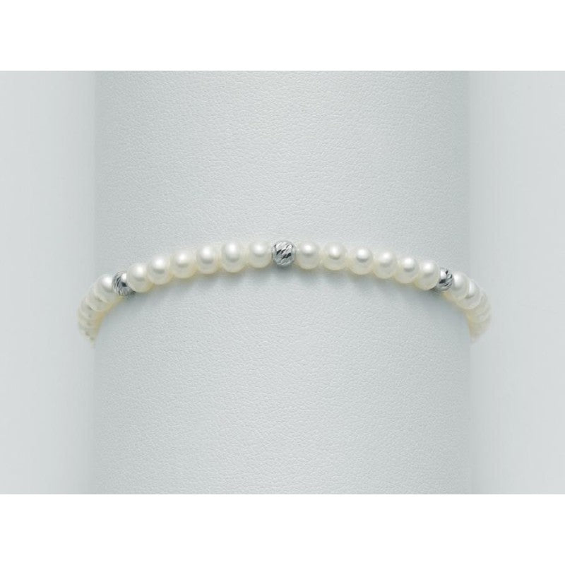Bracciale con perle bianche coltivate di acqua dolce 4-4,5 mm ed oro bianco 375 MILUNA DONNA