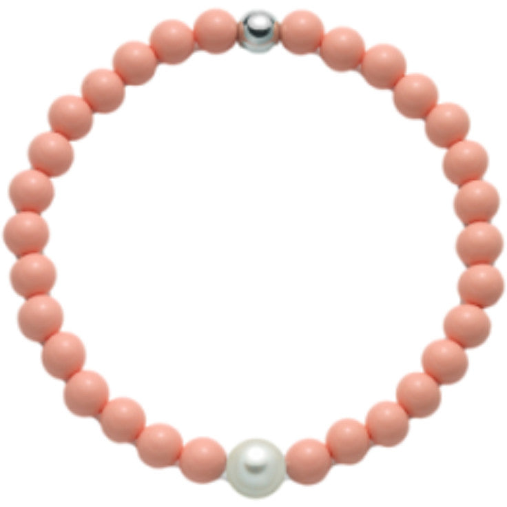 Bracciale Donna Miluna Terra E Mare - PBR3207 Realizzato interamente in corallo rosa e argento 925, questo bracciale è elastico ed è impreziosito da una perla coltivata di 7.5/8 mm. La dimensione dell'agglomerato di corallo è di 6 mm per sfera. La lunghezza è di 17.5 cm.