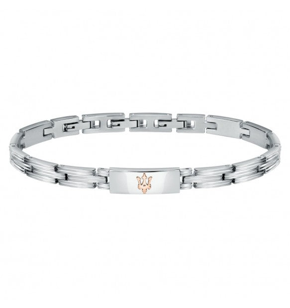 Braccialetto da uomo Maserati realizzata in acciaio anallergico. Centrale logato.