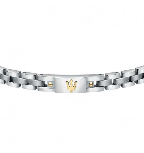 Braccialetto da uomo realizzato con maglia jubilee in acciaio anallergico; targa centrale con logo dorato.