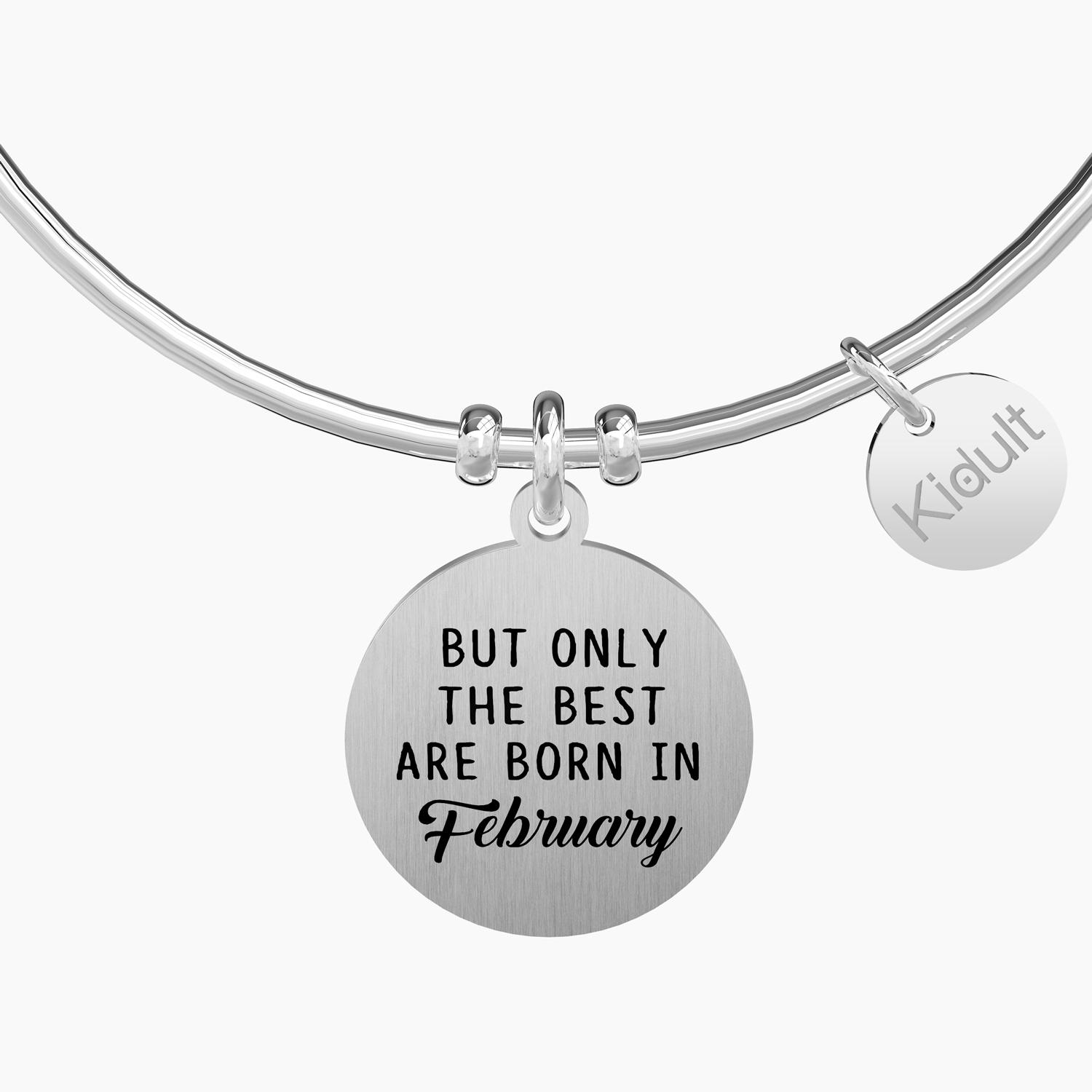 Bangle in acciaio con ciondolo FEBBRAIO. Incisione smaltata sul ciondolo.