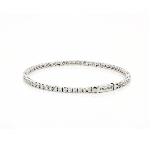 Bracciale tennis in argento 925, pietre zirconia cubica bianca e chiusura a cassetta con logo.