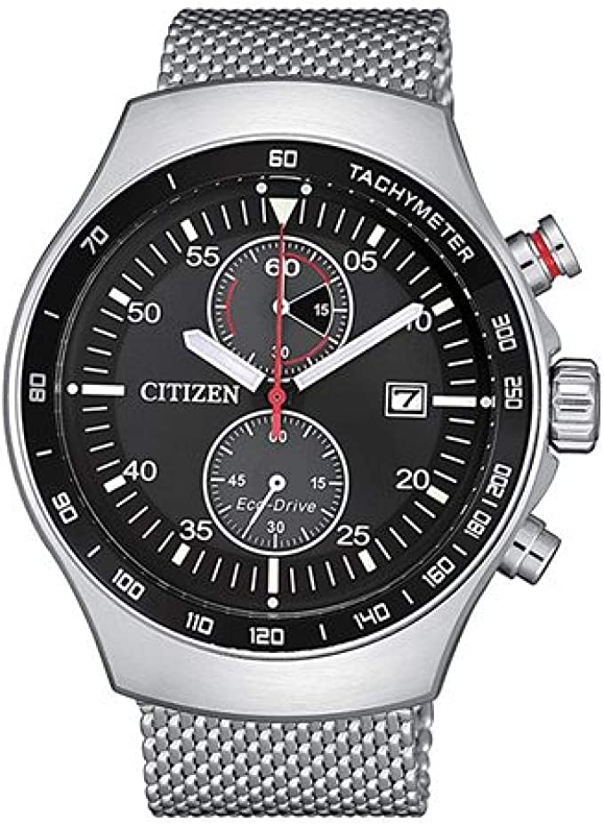 Orologio Citizen Ecodrive - CA7010-86E Con movimento eco drive (a carica luce infinita), riserva di carica 270 giorni caratteristiche cassa in acciaio da 43. vetro minerale antigraffio e antiriflesso, fondo serrato a vite. funzioni: cronografo a 1-5 di sec. fino a 60 minuti e datario. resistenza all'acqua è di 10 atm Cassa Acciaio, Diametro Cassa 43 mm, Bracciale Maglia Milano