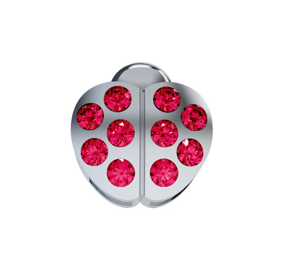 Elemento Coccinella in oro bianco 18 kt e rubini.