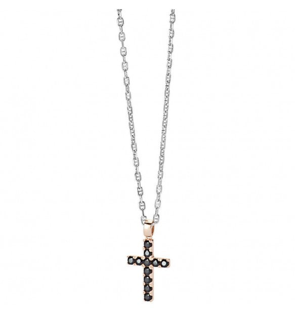Pendente con croce placcata oro rosa impreziosita da cristalli neri.