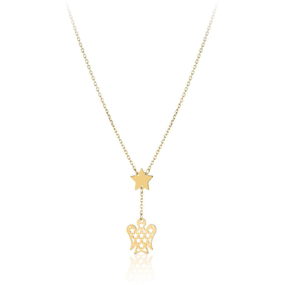 Collana pendente della collezione Roberto Giannotti Angeli Oro da donna. Colore: oro. Il gioiello è in oro giallo 375‰ formato da catena e da ciondolo a lastra a forma di stella con angelo pendente traforato con stelle. Misura 42 - 45 cm.