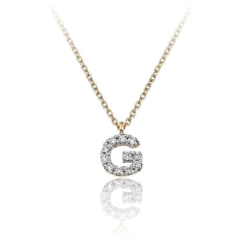 Collana in oro giallo 18 kt e pendente a forma di lettera G con diamanti bianchi 0,06 ct.