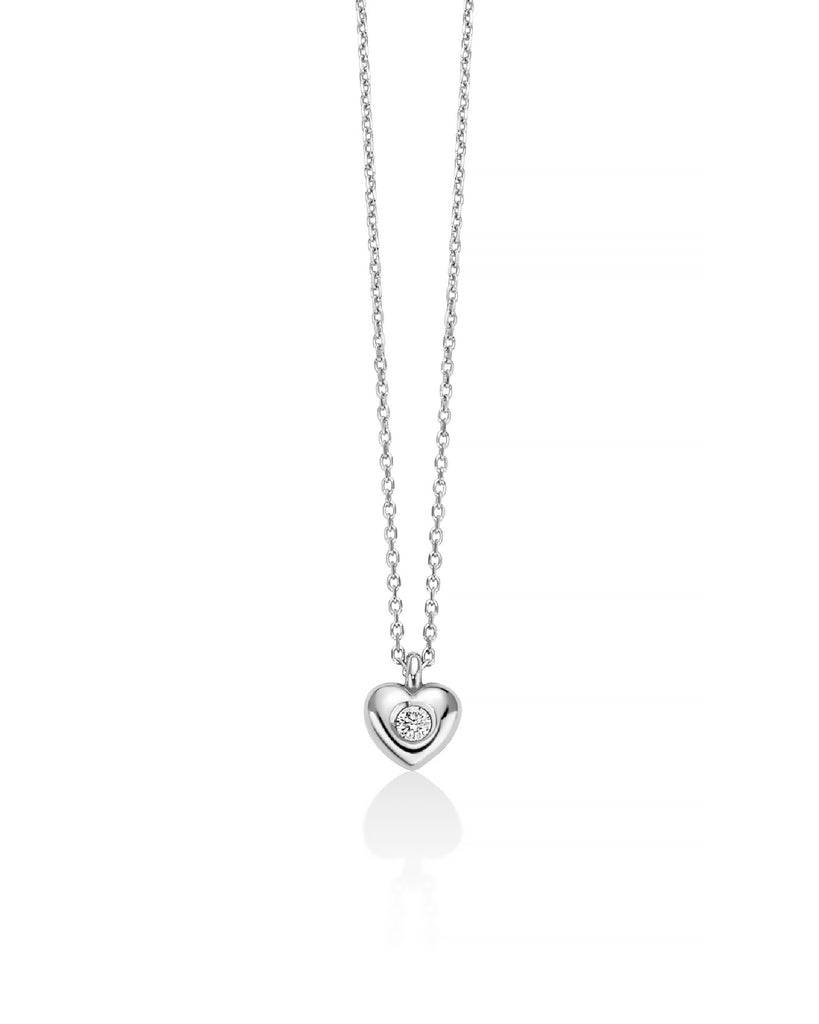 Collana girocollo della collezione Miluna Diamanti 375 da donna. Colore: argento. Il gioiello è in oro bianco 375‰ (9Kt) con un ciondolo a forma di cuore impreziosito da un diamante naturale taglio brillante rotondo con caratura totale di 0,02 - colore G - purezza SI. Lunghezza 45 cm con chiusura a moschettone. 100% Made in Italy.
