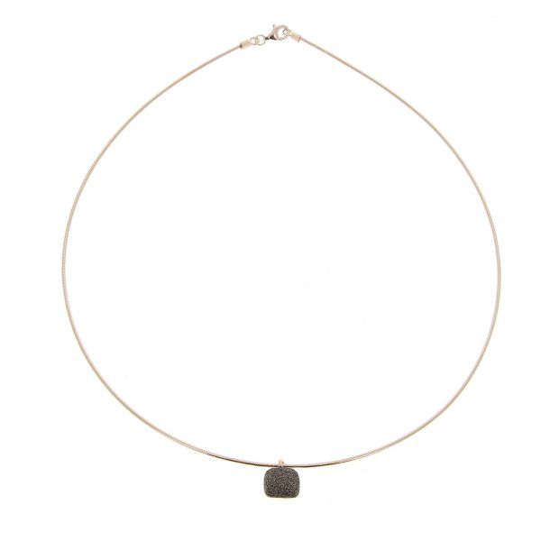 Girocolla Pesavento in argento,titanio ed oro rosa.Pendente luminoso e brillante ricoperto di POLVERE di SOGNI marrone ottenuta dalla lavorazione delle pietre preziose.