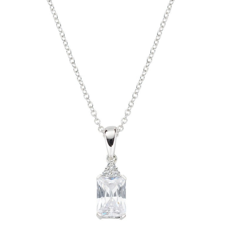 La collana è caratterizzata da uno zircone bianco taglio ottagonale pendente impreziosito con luminosi zirconi bianchi.