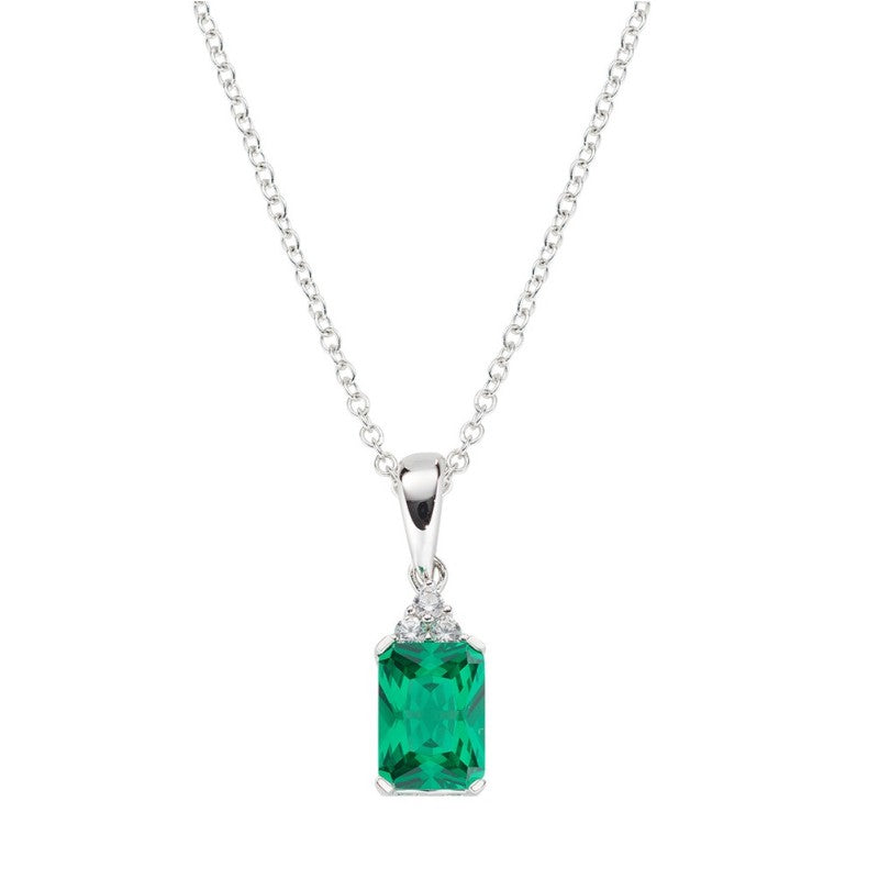 La collana è caratterizzata da uno zircone verde taglio ottagonale pendente impreziosito con luminosi zirconi bianchi.