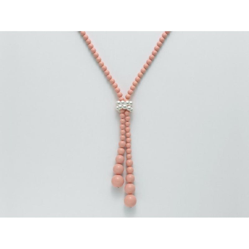 Collana in corallo rosa 6-14 mm, perle bianche coltivate e chiusura in argento 925 rodiato MILUNA DONNA