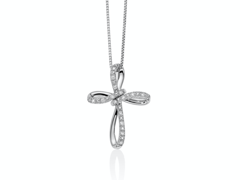 Collana donna miluna, cld4424, collezione croci. oro 750/1000 nr 15 diamanti naturali pt.tot 7, 5 col.g pur.si taglio brillante rotondo catenina veneziana bianca misura croce 18x25mm