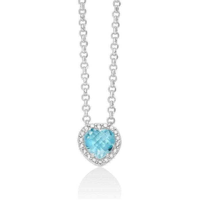 Collana Donna Miluna Gemma Del Cielo - CLD4367 Una nuova collezione per dare freschezza e colore al look di ogni persona che lo indossa. Il colore stesso vuole richiamare appunto il cielo e Miluna vuole regalare l'emozione di indossare un gioiello unico e con la semplicità che solo il brand sa dare. La realizzazione in argento 925 fa risaltare la pietra sul pendente, e si tratta di un topazio a forma di cuore di caratura 0.45 per 6 mm di diametro totale. La lunghezza del collier è di 42 cm con un allungo di 3 cm.