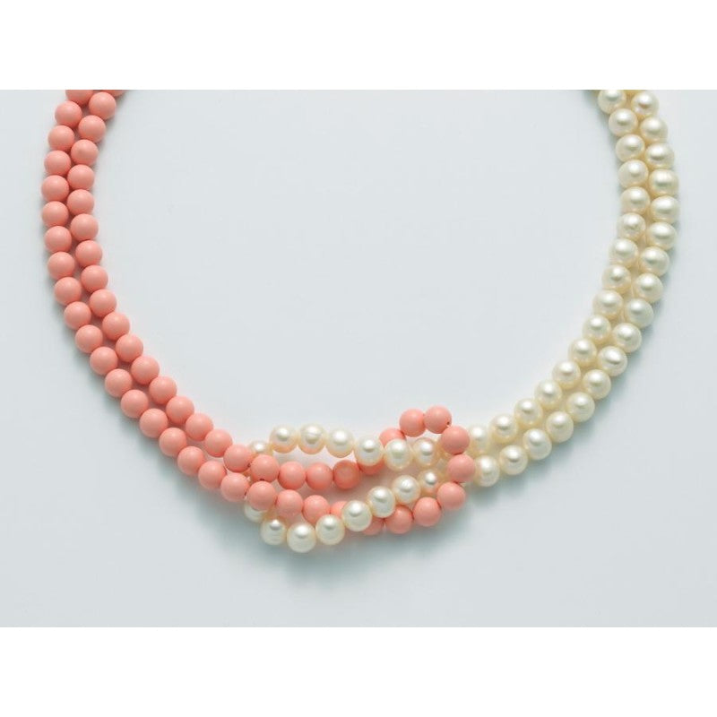 Collana Donna Miluna PCL5178 in corallo rosa 6mm, perle bianche coltivate di acqua dolce 6-6,5 mm e chiusura in argento 925