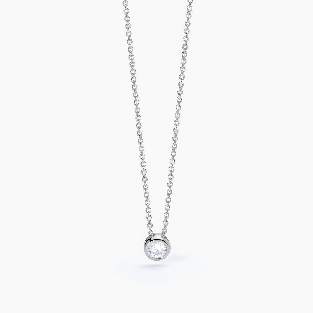 Girocollo da donna in argento rodiato con catena forzatina e ciondolo tondo con zircone bianco.