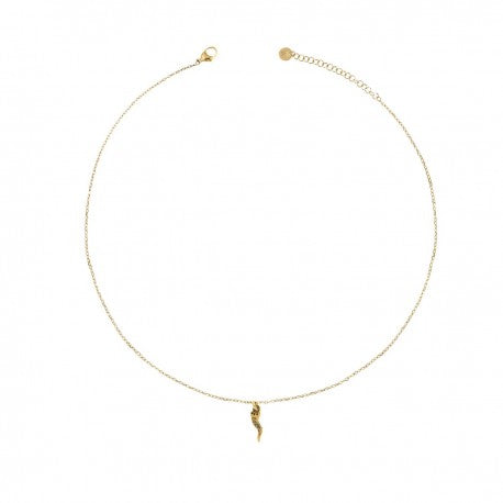 Collana catena in Argento 925 con Placcatura in Oro Giallo18kt, con Corno con Zirconi. Lunghezza Collana 38cm+4cm.