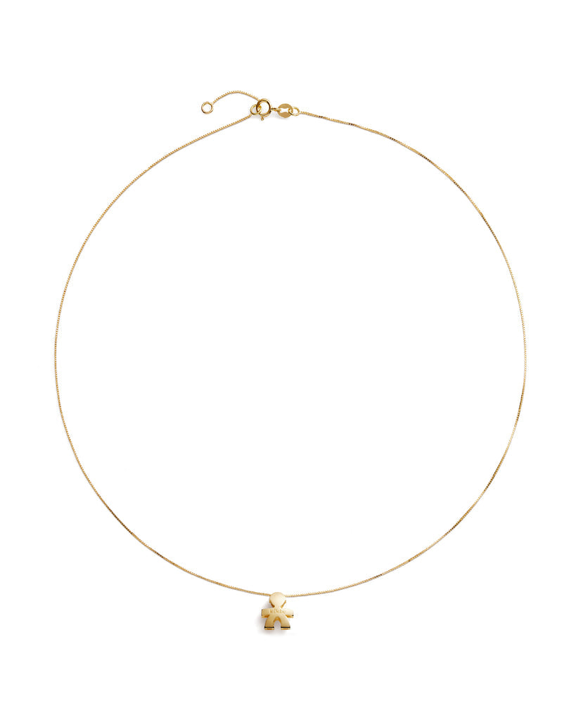 Collana girocollo della collezione leBebé I Tesorini da donna. Colore: oro giallo. Il gioiello è in oro giallo 750‰ (18kt) con catena e ciondolo a forma di bimbo. Altezza: 1 cm. Lunghezza regolabile da 40 cm a 42 cm con chiusura a moschettone
