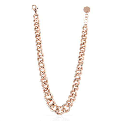 Collana con catena grumetta a scalare in bronzo lucido. Chiusura con moschettone ed anelli di allungamento. Lunghezza 43 cm