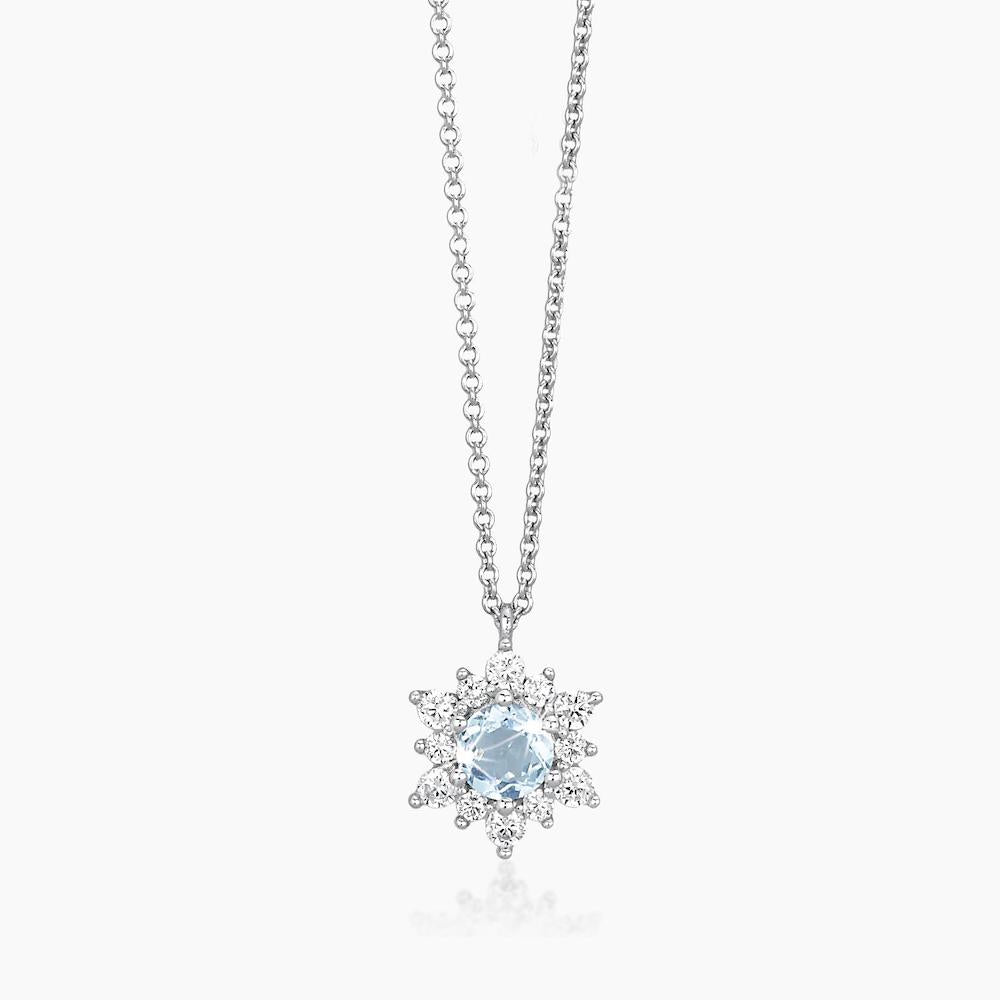 Collana in argento con ciondolo a forma di fiore in pietra color acquamarina a taglio rotondo e zirconi.