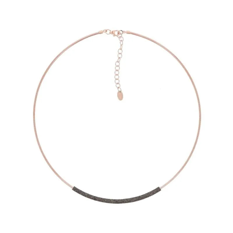 Collanan in argento 925 con trattamento galvanico in oro rosa e con barretta ricopetra in POLVERE DI SOGNI marrone.