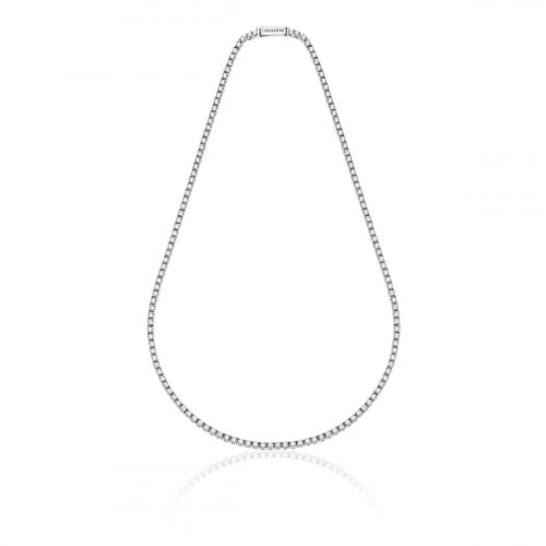 Collana Tennis in argento con pietre zirconia cubica bianca e chiusura a cassetta con logo. Disponibile in misura 38,00 cm e 41,00 cm.