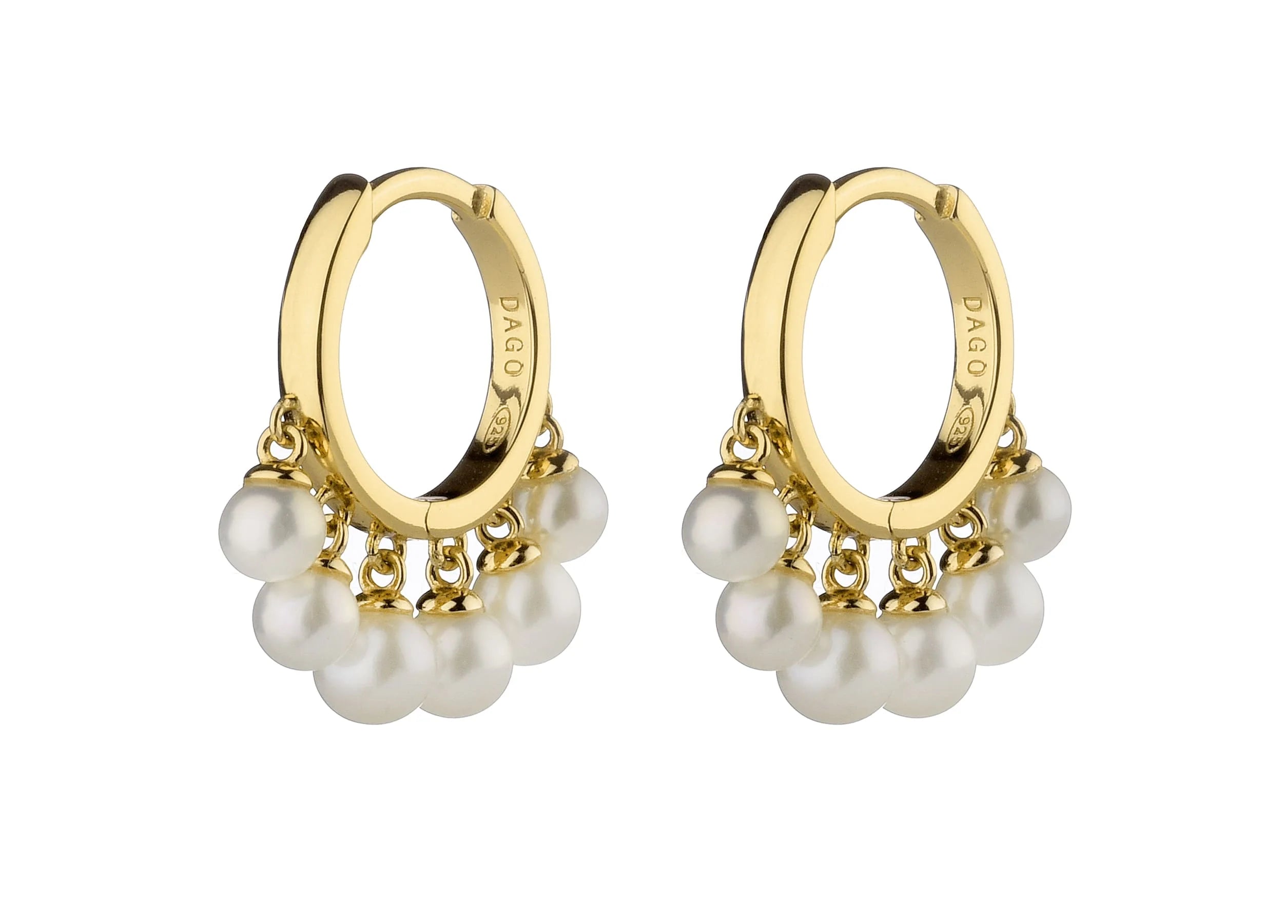 Orecchini con piccoli charms in perle di fiume, realizzati in Argento 925 con galvanica rodio giallo ad alta resistenza.