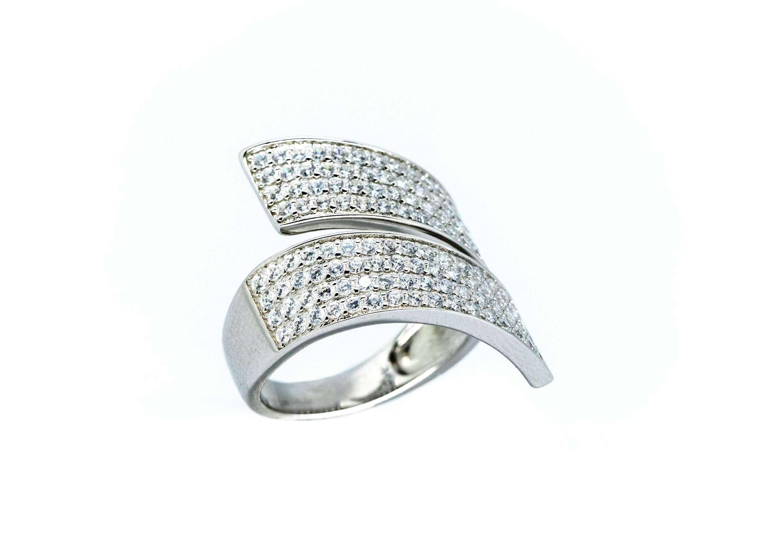 Anello contrarier realizzato in argento 925 con galvanica rodio bianco impreziosito da un brillante pavè in zirconia cubica bianca.