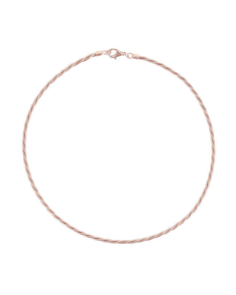 Collana girocollo della collezione Pesavento DNA Spring da donna. Colore: oro rosa. Il gioiello è composto da fili flessibili in argento 925‰ rosé intrecciati tra di loro. Lunghezza regolabile da 39 cm a 43 cm con chiusura a moschettone.