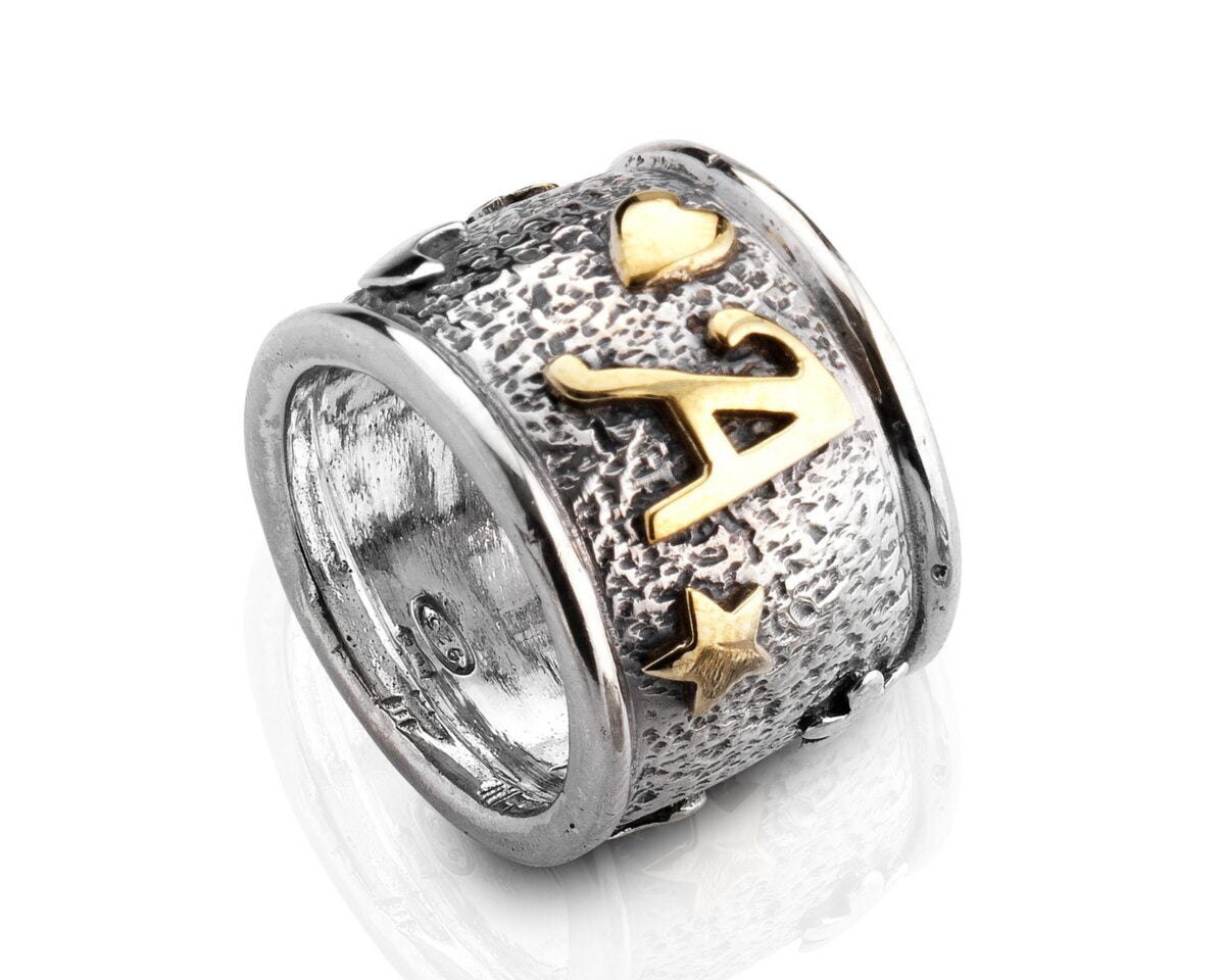 Fascia argento 925 con simboli o iniziali in bronzo.