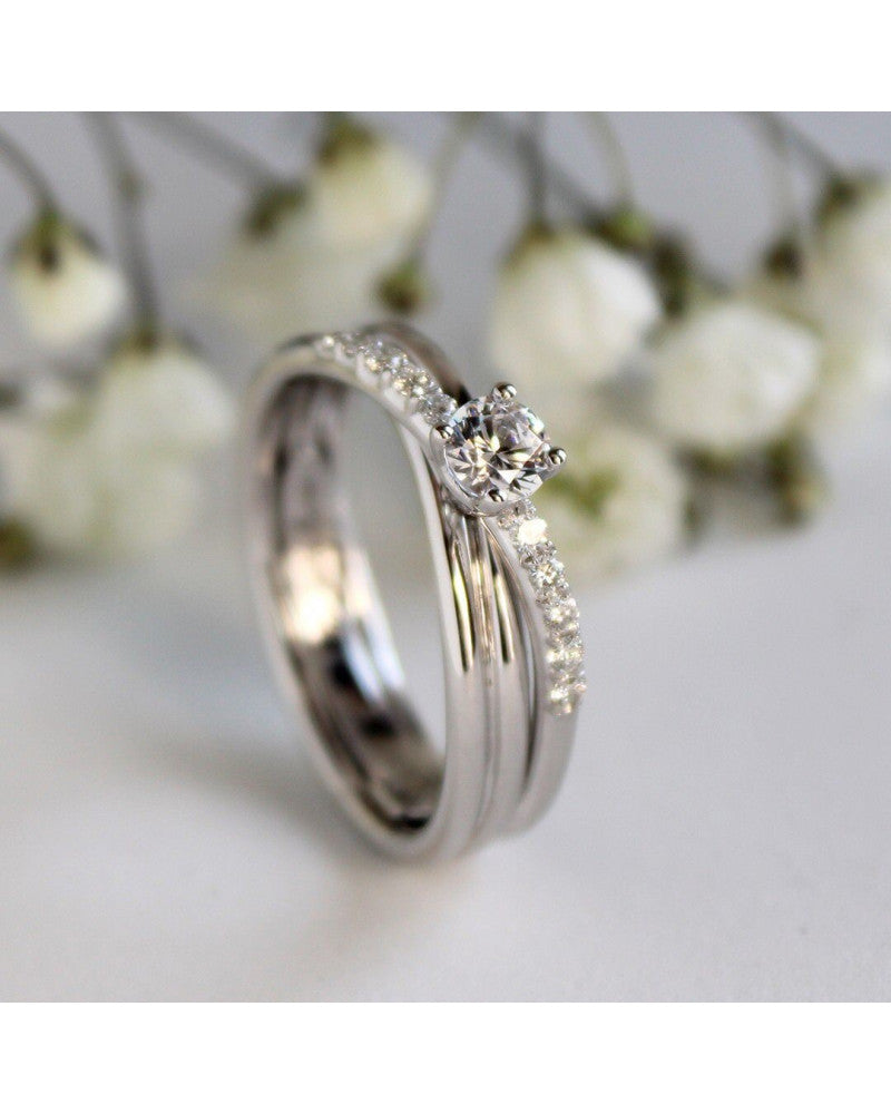Anello Filodellavita Solitario 3 fili oro bianco 9 Kt diamantI +10 bt 0.14 centrale 0.18 Ct VS1 Col E