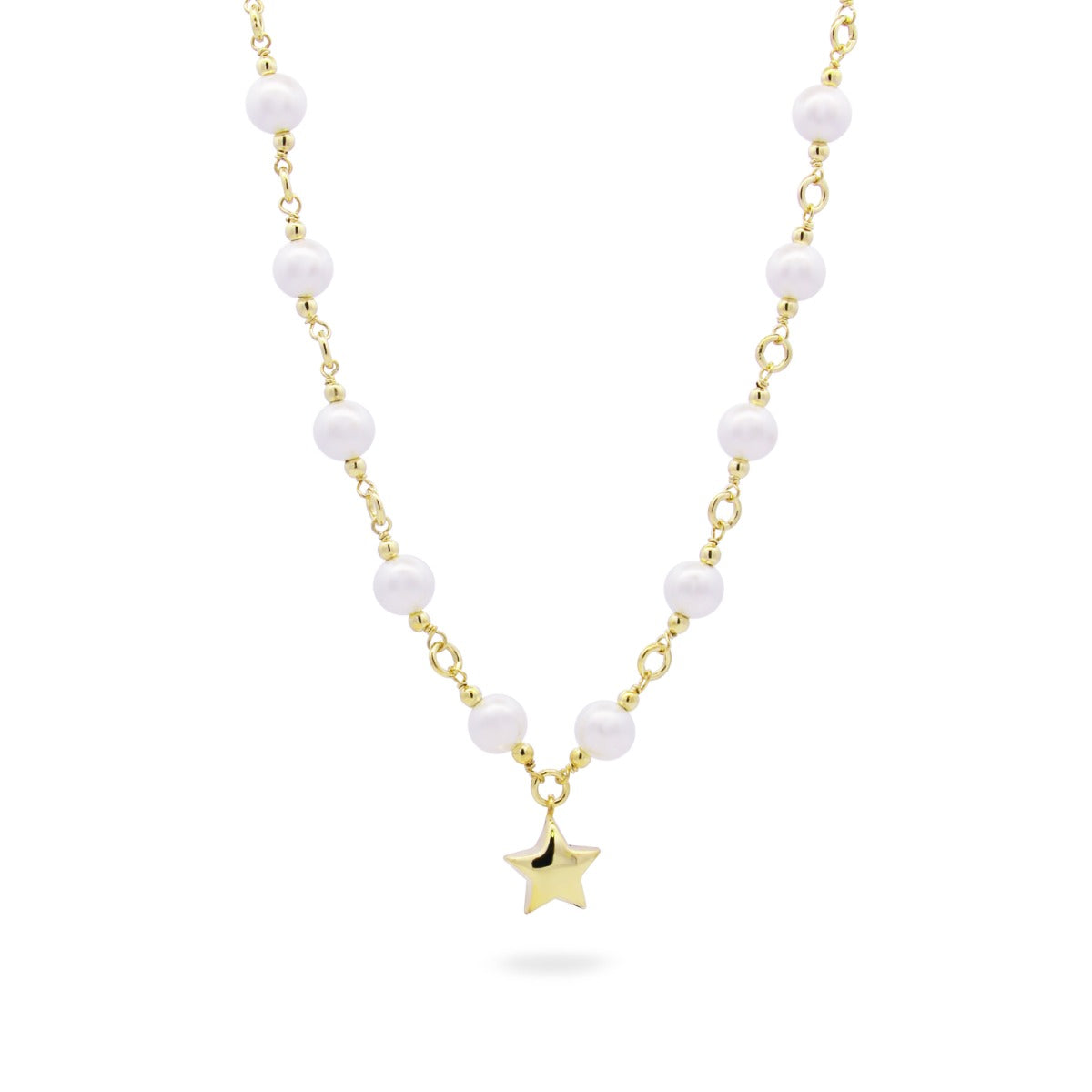 Girocollo con ciondolo centrale stella bombata e perle di conchiglia