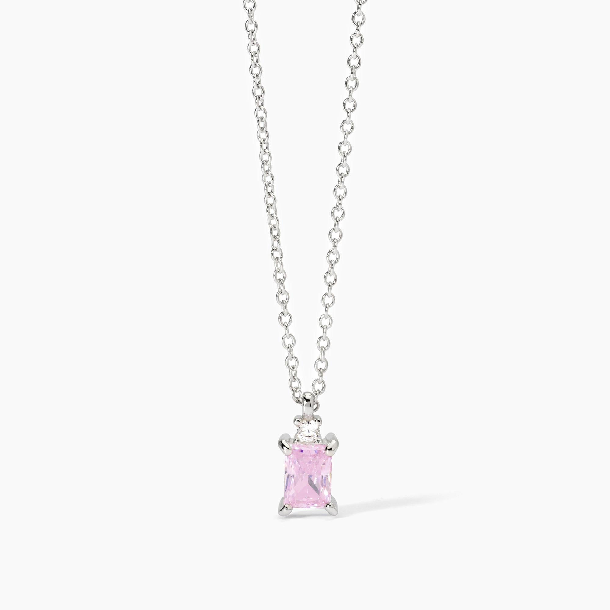 Girocollo regolabile da donna in argento rodiato con catena forzatina, zircone rosa taglio princess e punto luce.