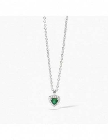 Girocollo regolabile da donna in argento rodiato con catena forzatina, ciondolo a forma di cuore con smeraldo sintetico e zirconi bianchi.