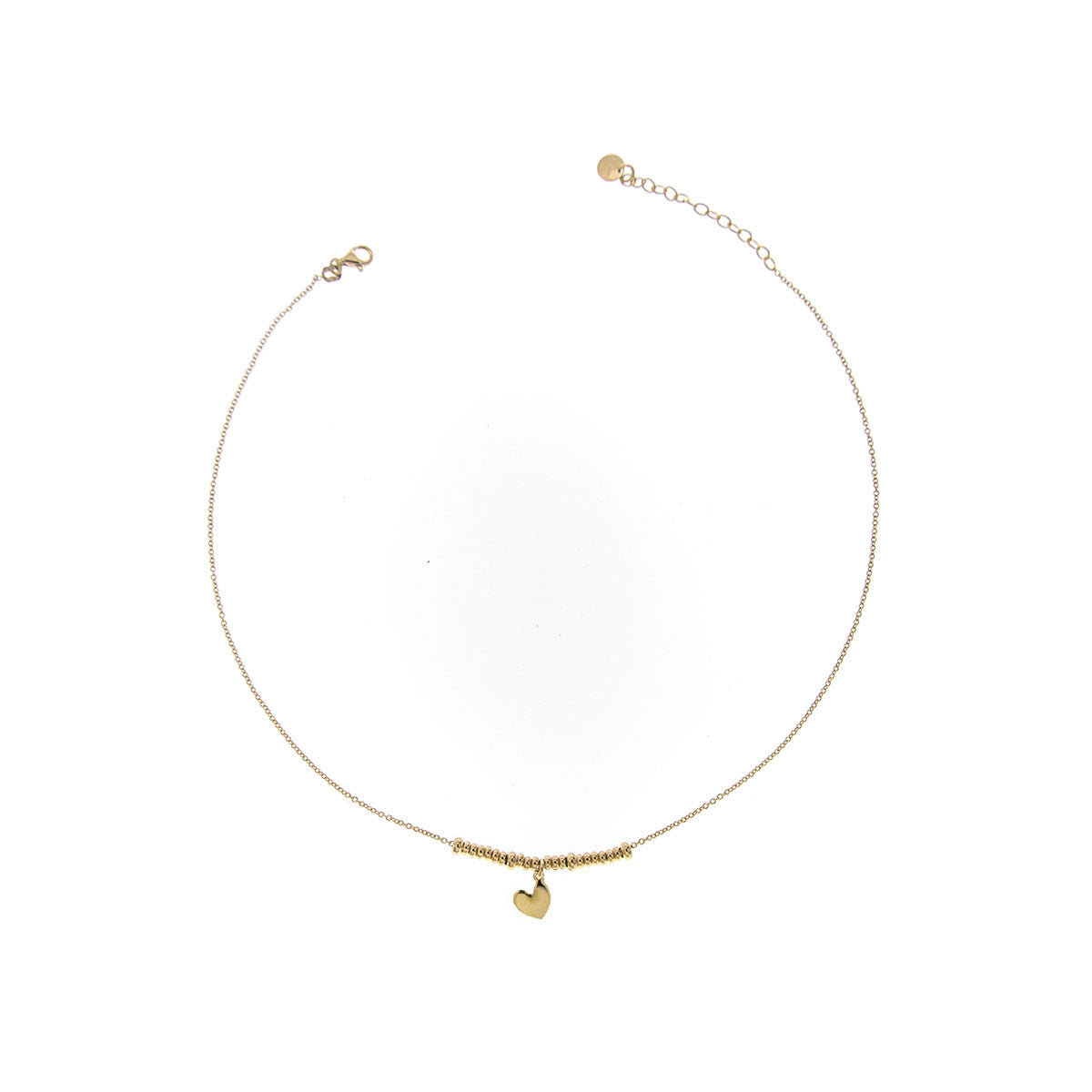 Girocollo con catenella, micro anelli e soggetto centrale cuore bombato.