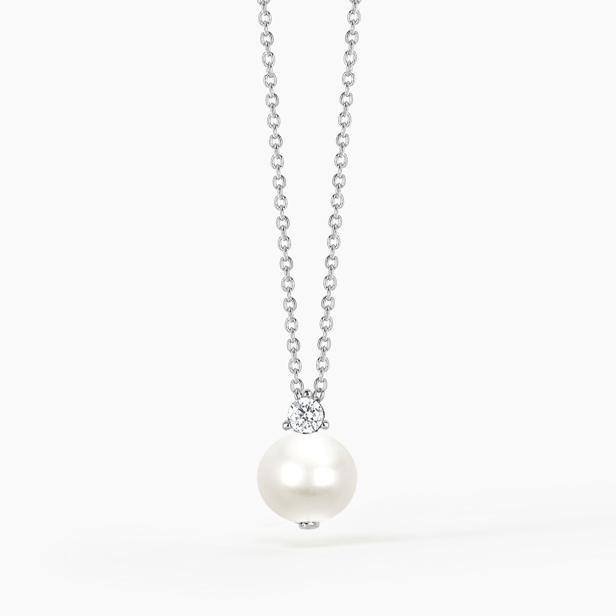 Girocollo in argento con ciondolo in perla coltivata e punto luce in zircone.